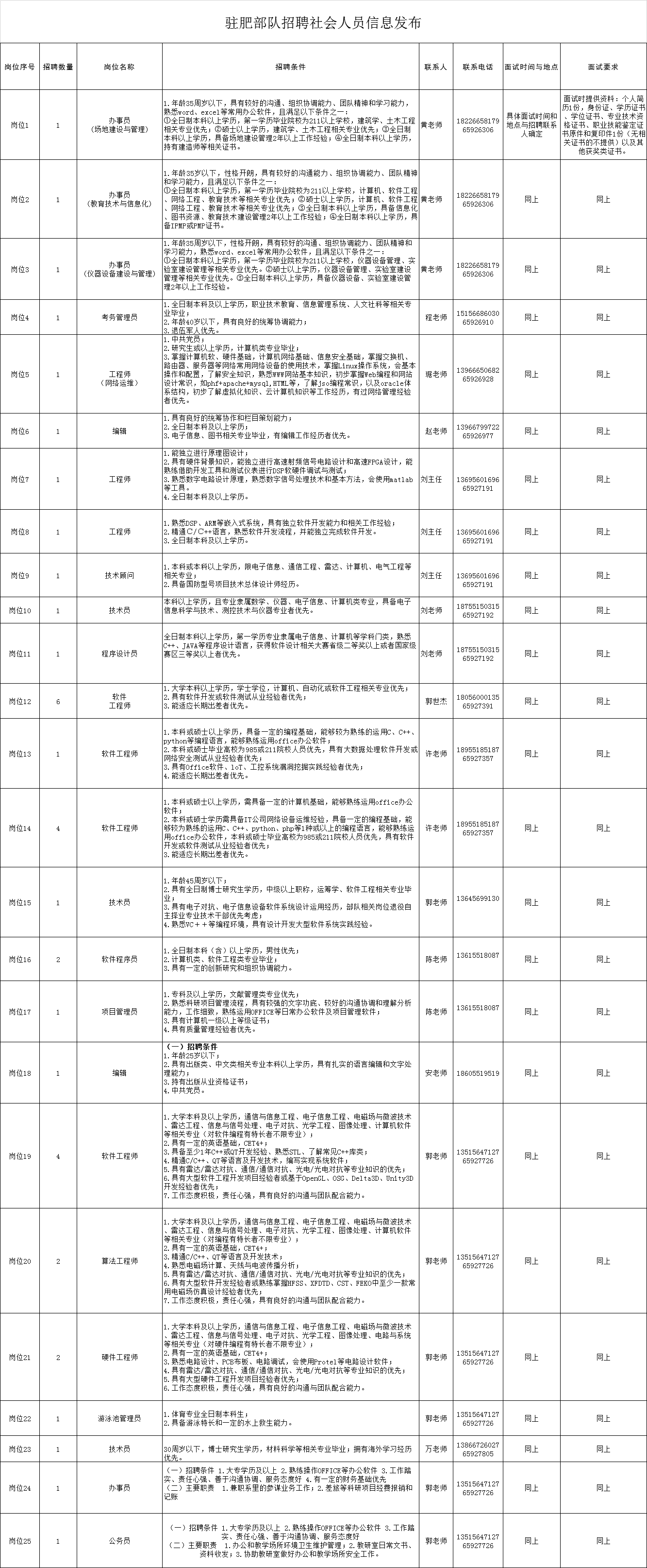 本次招聘共有25个相关岗位招聘39名员工。各大岗位福利满满、待遇丰厚。薪资待遇可电话咨询,具体可电话联系招聘岗位联系人!