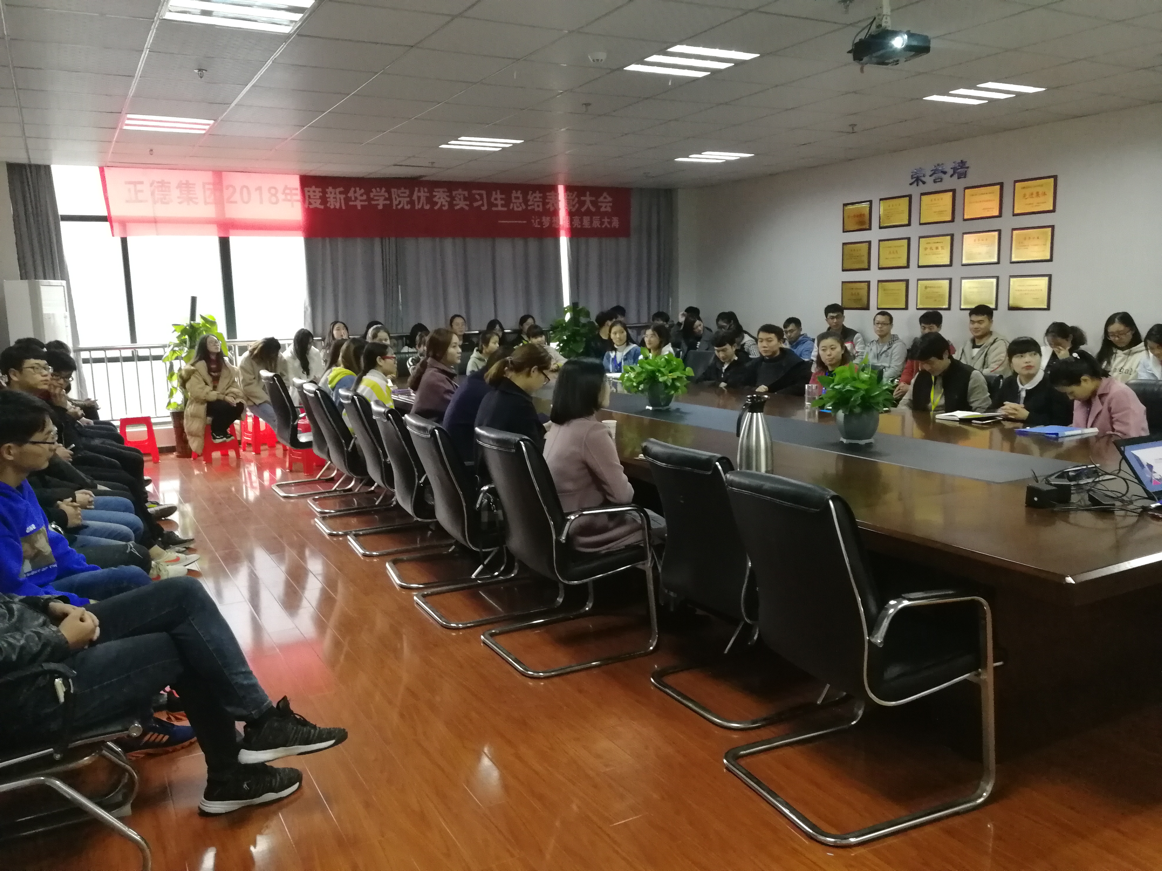 2018年11月16日,来自新华学院电子商务专业的实习生们为期一个月的实习生活已临近尾声,在实习工作结束之际,我们特邀新华学院各领导与正德集团领导相聚在正德集团总部六楼,召开了实习生工作总结与表彰大会。