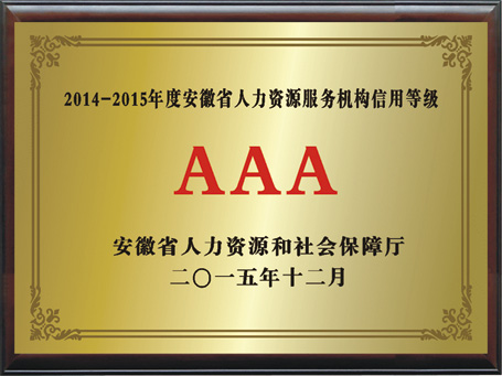 安徽省人资资源机构信用等级AAA2015