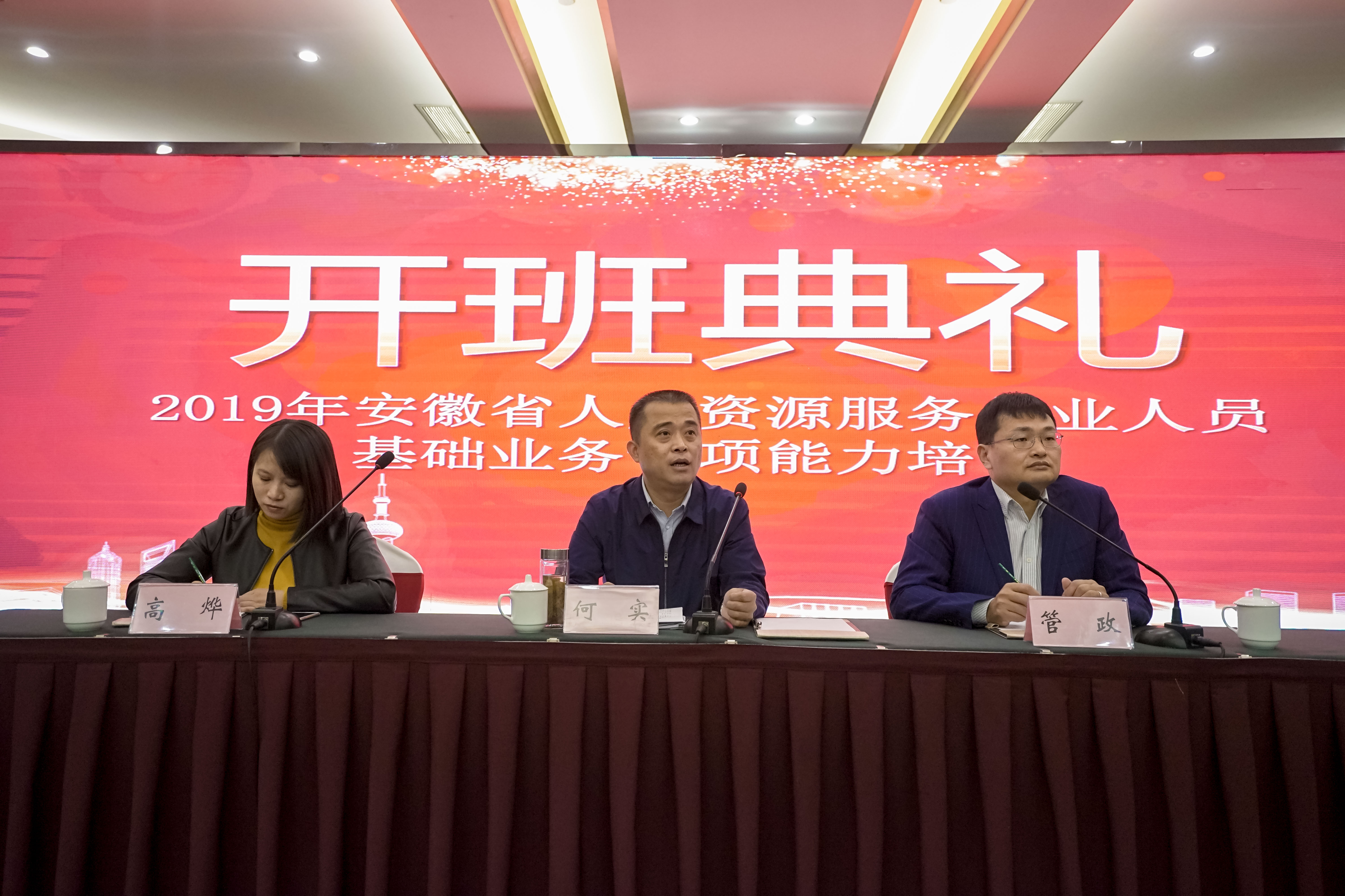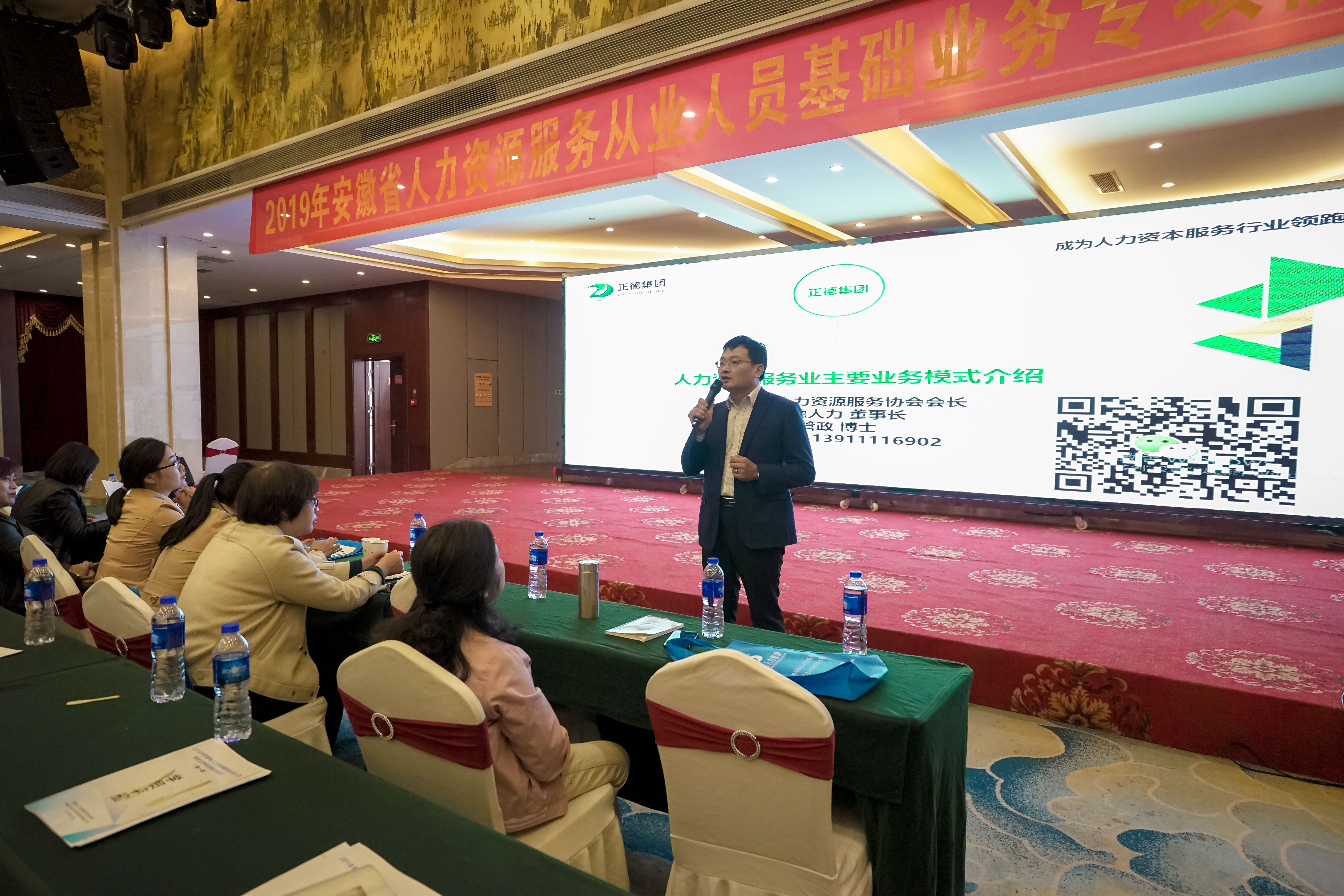 安徽省人力资源和社会保障厅、人力资源流动管理处何实处长,合肥市人力资源服务协会会长、正德人力管政董事长出席培训开班仪式并发表致辞。