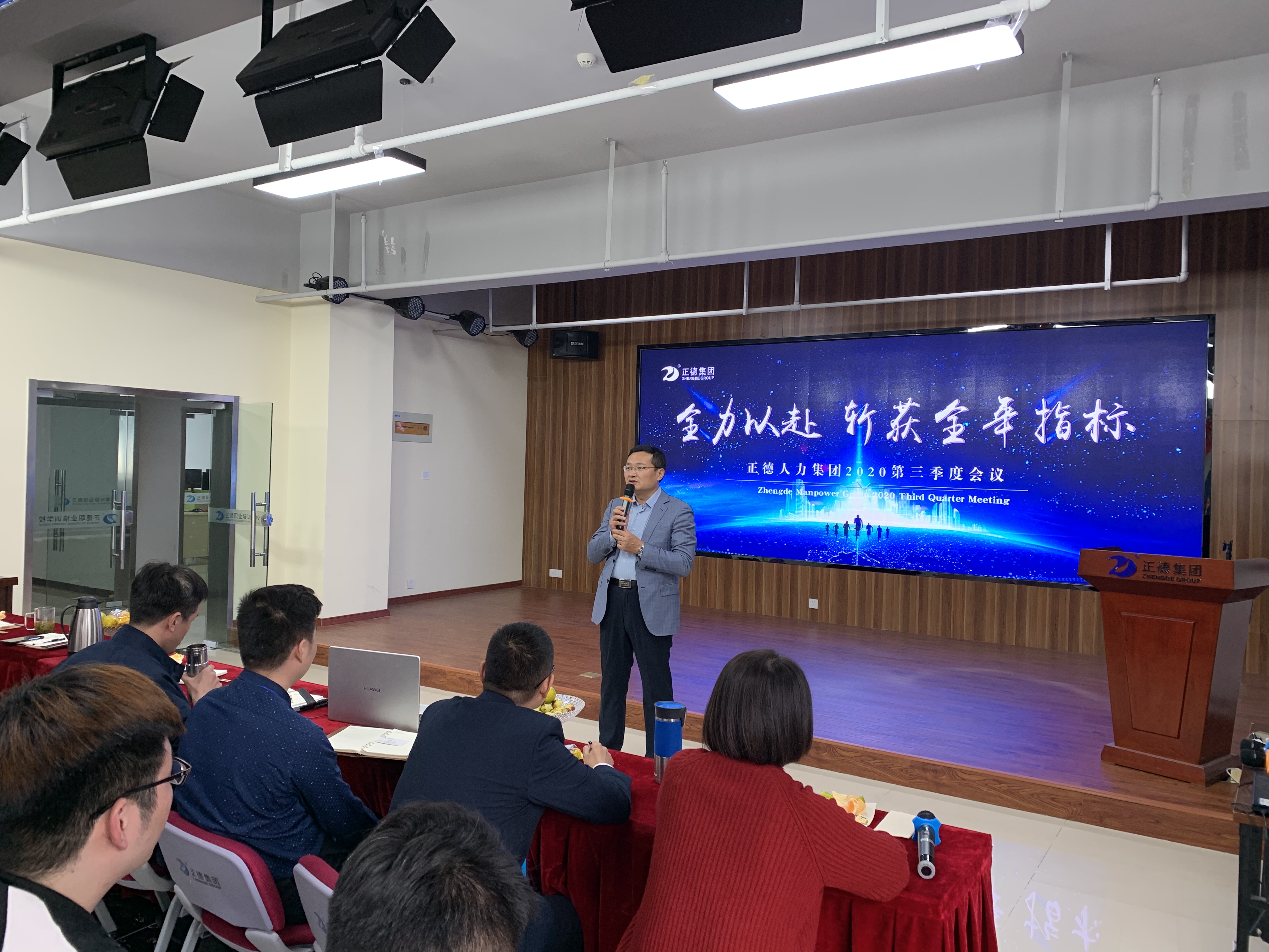 2020年10月17日,我们相聚在合肥服务总部召开正德人力2020第三季度会议,本次会议采用线下线上全程同步的方式举行,全国三总部、四中心及各个地市分公司的核心管理人员线上线下同步参会。本次的会议主题为:全力以赴,斩获全年指标。