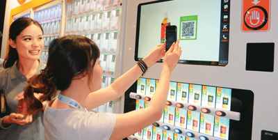 8月13日,参观者在2013中国互联网大会上体验二维码支付功能。
