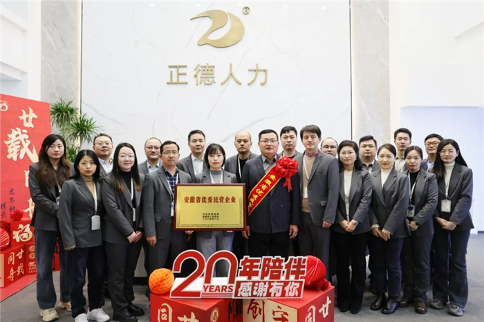 喜报!正德人力股份荣获“安徽省优秀民营企业”称号