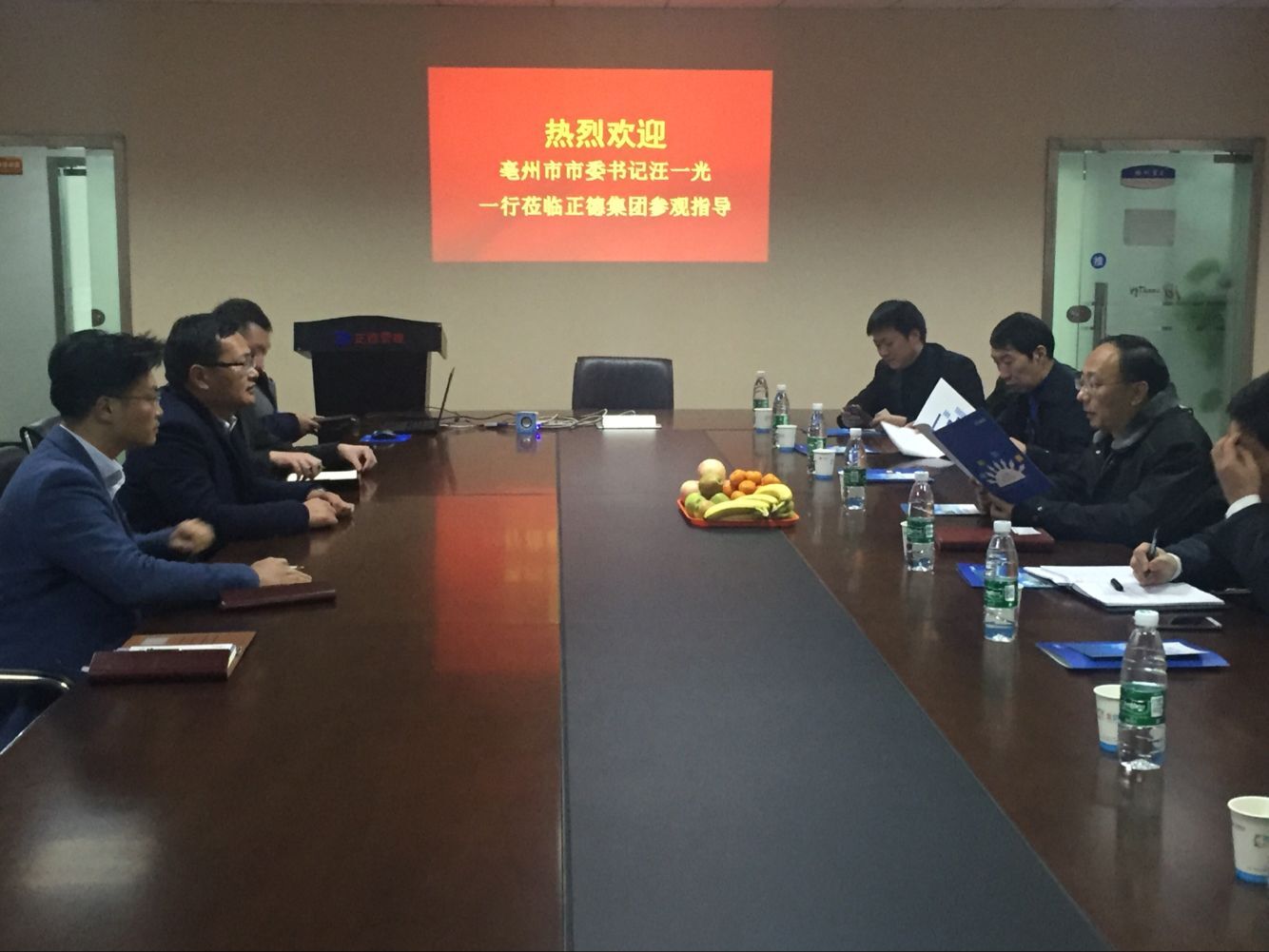 2017年1月20日下午,安徽省亳州市市委书记汪一光莅临正德集团参观指导,正德集团董事长亲自陪同参观考察。